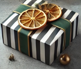 - 방법: 선물을 포장지로 감싼 후 중앙에 골드 리본을 묶어 클래식하고 따뜻한 분위기를 연출하세요.