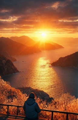 - 바다와 산이 어우러진 풍경이 일출의 장관을 극대화합니다.